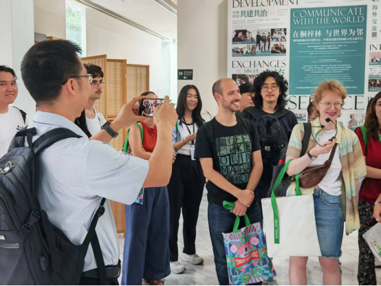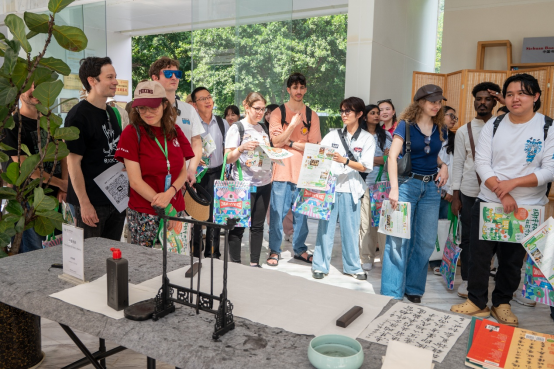 活动伊始,桐梓林社区邻里中心的运营负责人为留学生们系统介绍了社区的基本概况,重点讲解了邻里中心依托的五大服务平台以及“社区微博物馆”的建设理念与特色。随后,负责人带领同学们沉浸式体验传统毛笔书法。在墨香浸润中,同学们或凝神观摩,或提笔尝试,真切感受中华传统文化的魅力与韵味。活动现场氛围融洽,不少同学兴致盎然,纷纷用镜头记录下这一难忘的文化体验瞬间。
