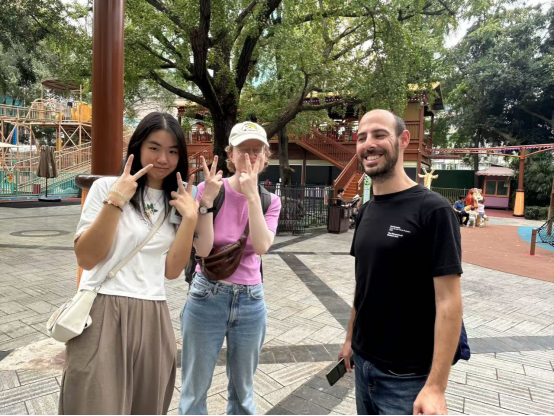 最后,同学们来到辛亥秋保路死事纪念碑广场集合。在集合时,不少同学被市民用水笔在地上写字的场景吸引,纷纷驻足观看并积极参与,与周围市民展开轻松自然的交流,氛围融洽。集合后,邓老师组织大家进行交流分享,同学们踊跃发言,积极分享。不仅讲述了自己与当地市民交流的真实体验,更是表达了对人民公园的深刻喜爱。通过这次活动,留学生们不仅走入了真实的成都“巴适”生活,更触摸到这座城市温暖包容的文化温度。四川大学海外教育学院将继续推动语言学习与在地文化体验的深度融合,助力留学生在实践中学习,在交流中成长。
