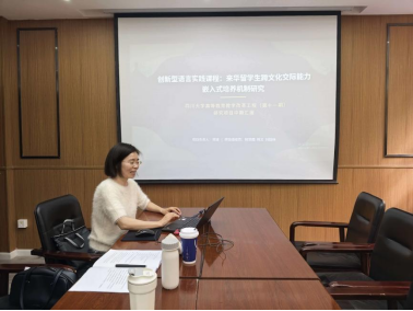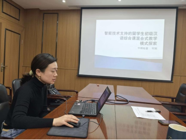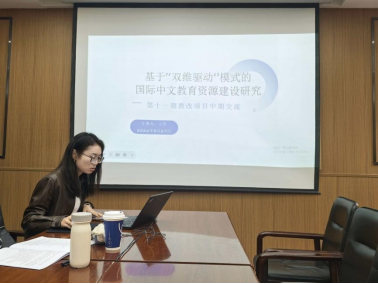王丹老师围绕《基于“双维驱动”模式的国际中文教育资源建设研究》项目进行汇报,该项目以“理解当代中国”为核心,聚焦留学生语言能力提升,已丰富教育资源、搭建多场景实践网络,正式出版一部教材并取得良好教学成效。下阶段项目组将完善实践体系,推进微课建设,探索智慧教学平台融合,完成装箱调查报告。